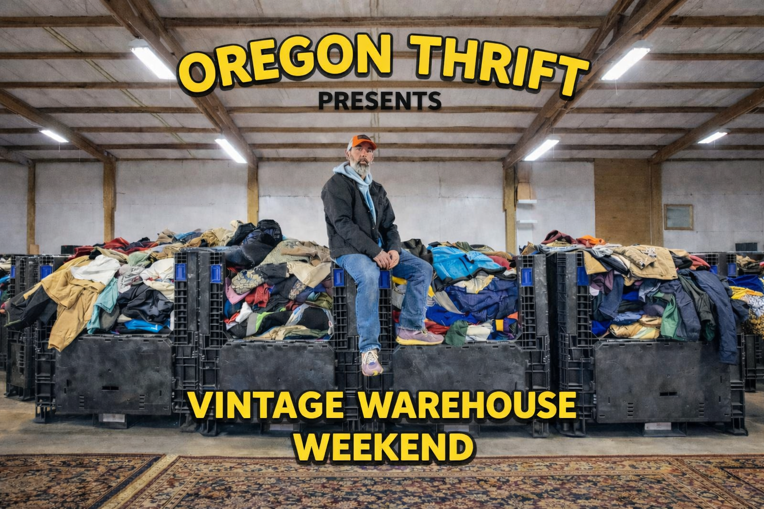 Oregon Thrift hosts a monthly vintage warehouse sale just outside Portland, Oregon. Each Vintage Warehouse Weekend features thousands of vintage clothing pieces including workwear, denim, military, outdoor gear, and streetwear. New inventory arrives every month from local estate sales and thrift sourcing. Use this page to find event dates, directions, and photos from past warehouse sales.